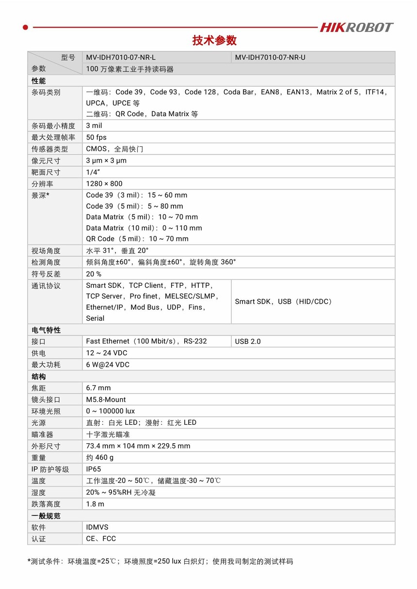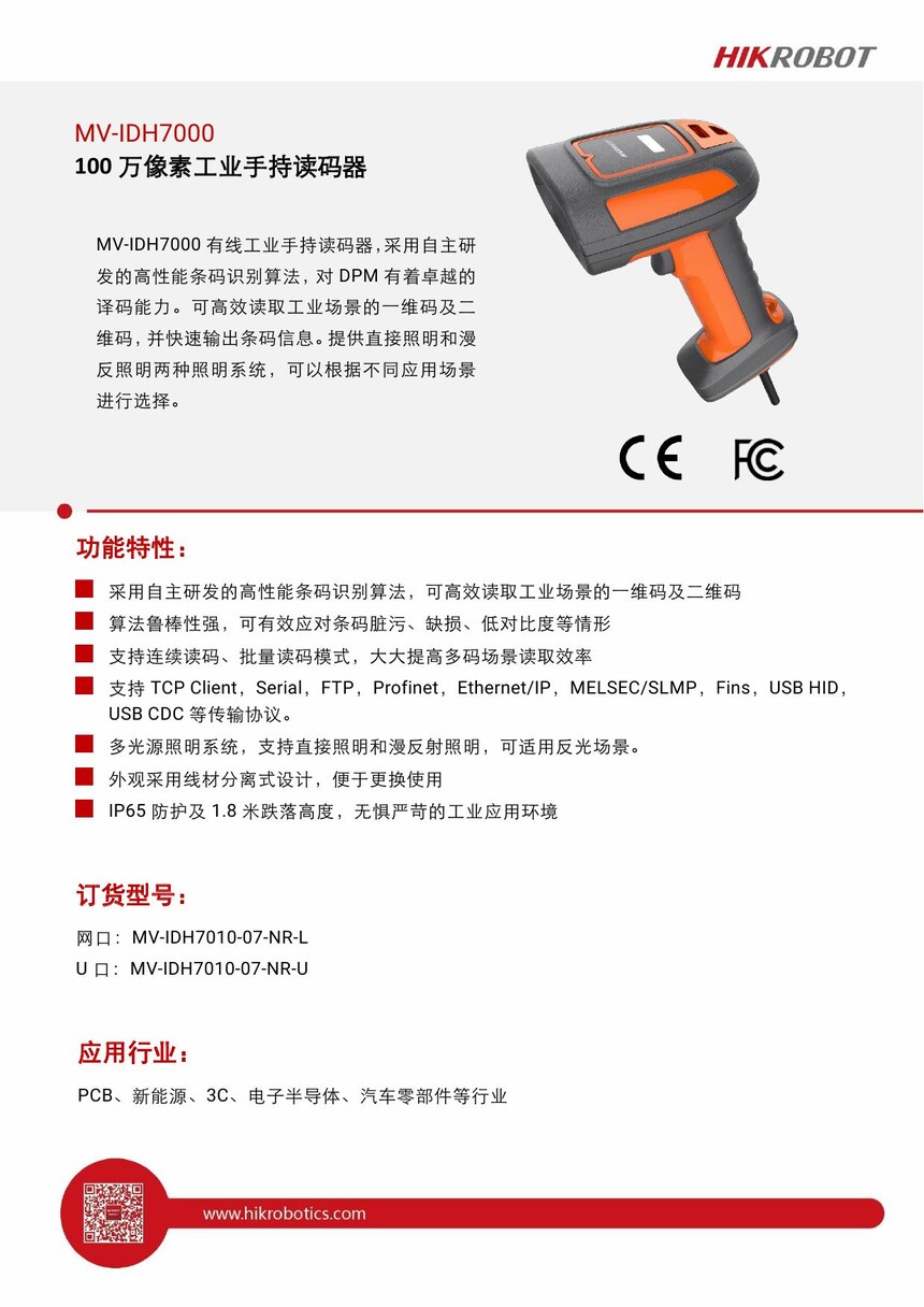 海康(HIKVISION) MV-IDH7000手持式扫描枪